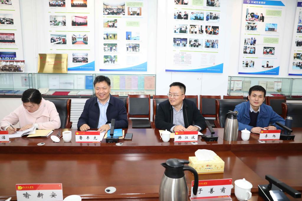3月19日下午,河南省社科院南阳分院院长、南阳师范学院南阳发展战略研究院院长鲁丰先,南阳师范学院粤港澳大湾区研究院院长韩江波,南阳发展战略研究院信息情报研究所所长江淑洁,南阳发展战略研究院经济发展研究所所长李旭等一行四人莅临我院参观交流。我院副院长于善甫等陪同参观。